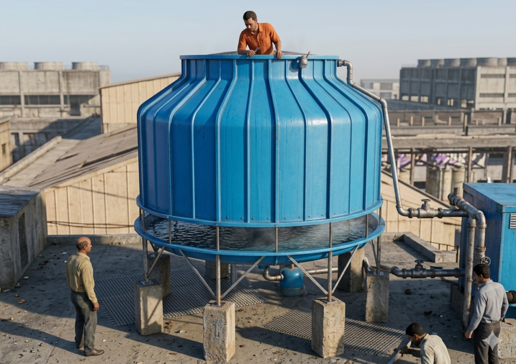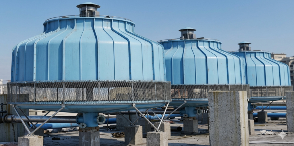 This type of cooling tower is ideal for small to medium-scale industries, HVAC systems, commercial buildings, plastic molding units, and other process cooling applications where space-saving and efficiency are important.